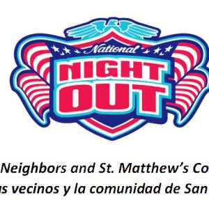 Join your neighbors and St. Matthew's Community NATIONAL NIGHT OUT 2022 Tuesday, August 2, 2022 6:00pm to 8:00pm St. Matthew's Church 510 Hall Avenue, St Paul Hall Avenue will be blocked off between Winifred & Robie Free beverages and snacks Meet your neighbors Download PDF flyer: St Matts Men's Club National Night Out.pdf … [Read more...] about St Matt’s Men’s Club National Night Out, 8-2-2022