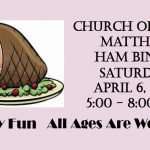 Ham Bingo St. Matthew's Social Hall 510 Hall Ave, St Paul, MN 55107 Saturday, April 6th, 2019 5 pm to 8 pm $50 or Half-the-Pot Coverall on Final Game FOOD and BEVERAGES FUN FOR THE WHOLE FAMILY ALL AGES WELCOME!!! (KIDS MUST BE WITH ADULT TO PLAY) Download flyer: Ham Bingo 2019 … [Read more...] about Ham Bingo April 6, 2019 – sponsored by the Men’s Club