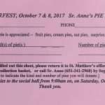Oktoberfest, October 7 & 8, 2017, will see the return of Sr. Anne's Pie Booth. Please plan on baking or buying a delicious pie for her booth. Any kind of pie is appreciated – fruit pies, cream pies, nut pies, surprise, etc. Bring your pies to the social hall from 9:00am on, on Saturday, October 7th. Thank you. Download the pie signup form here: sr-anne-pie-signup-sheet … [Read more...] about Sr. Anne’s Pie Booth – Oktoberfest