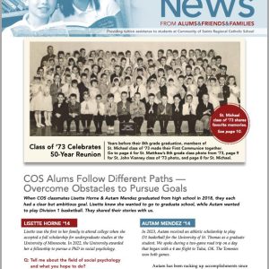 The Good News from Alums, Friends and Families providing tuition assistance to Community of Saints Regional Catholic School Download PDF: The Good News Spring 2023 COS Alums Follow Different Paths - Overcome Obstacles to Pursue Goals - Profiles of Lisette Horne '14 and Autam Mendez '14. When COS classmates Lisette Horne & Autam Mendez graduated from high school in 2018, they each had a clear and ambitious goal. Lisette knew she wanted to go to graduate school, while Autam wanted to play Division 1 basketball. They shared their stories with us. Message from Father Steve - We walk … [Read more...] about The Good News Spring 2023