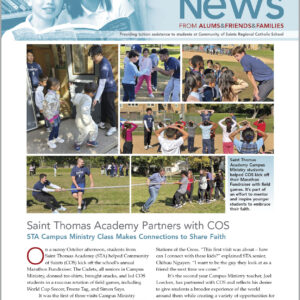 The Good News from Alums, Friends and Families providing tuition assistance to Community of Saints Regional Catholic School Download PDF: The Good News Fall-Winter 2023 Saint Thomas Academy Partners with COS. STA Campus Ministry Class Makes Connections to Share Faith. students from Saint Thomas Academy (STA) helped Community of Saints (COS) kick off the school’s annual Marathon Fundraiser. The Cadets, all seniors in Campus Ministry, donned tee-shirts, brought snacks, and led COS students in a raucous rotation of field games, including World Cup Soccer, Freeze Tag, and Simon Says. It was … [Read more...] about The Good News Fall-Winter 2023