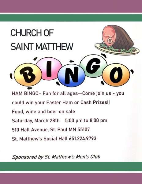 Come join us for Ham Bingo on Saturday, March 28th, 5:00 pm to 8:00 pm.