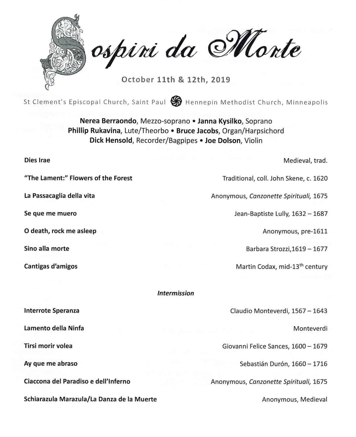 Here are some photos from the October 13, 2019 concert “Sospiri da Morte” at the Church of Saint Matthew.