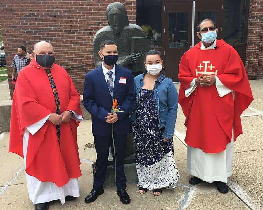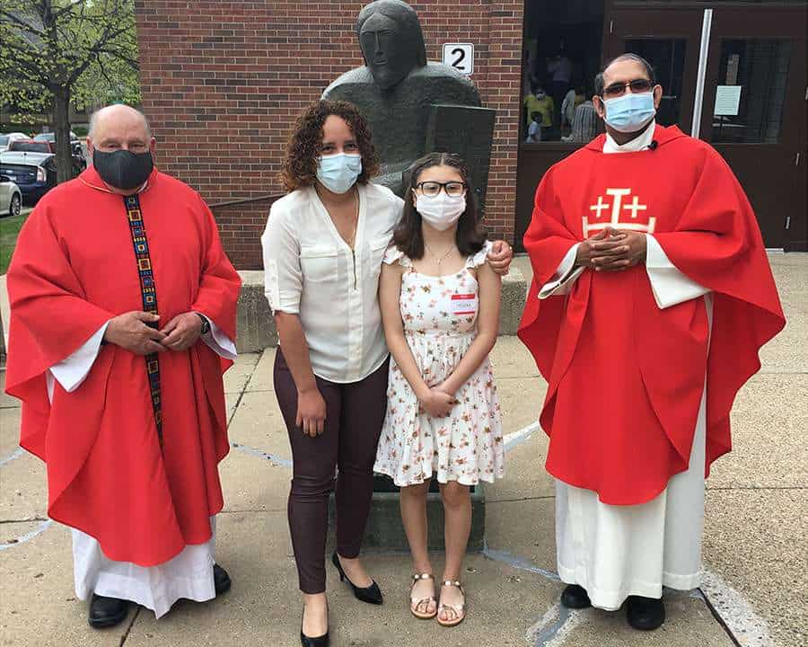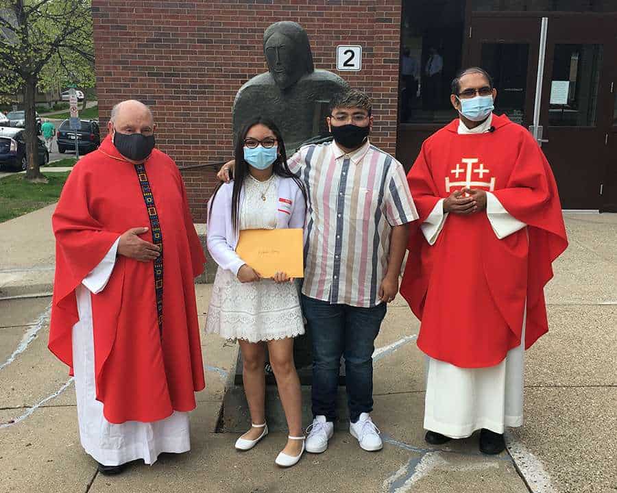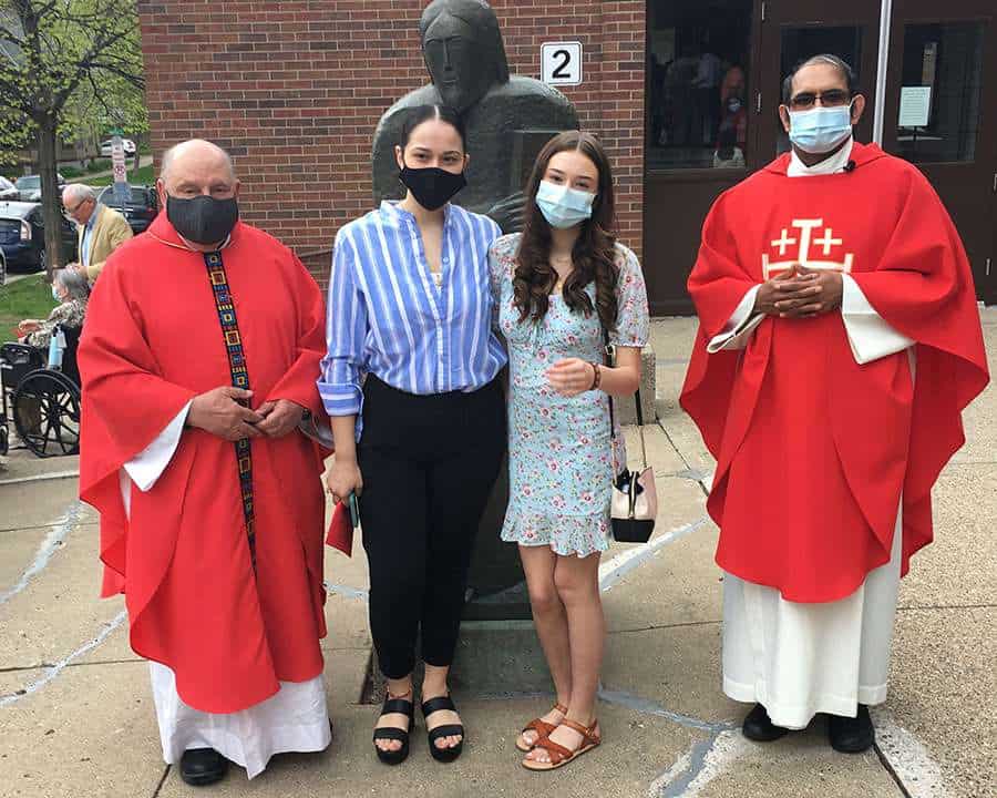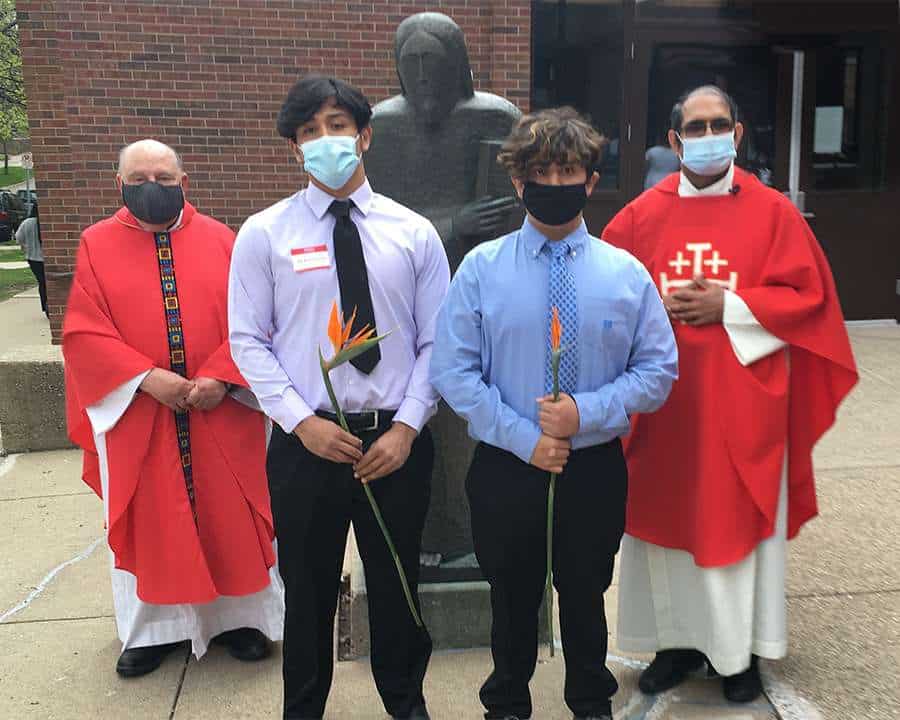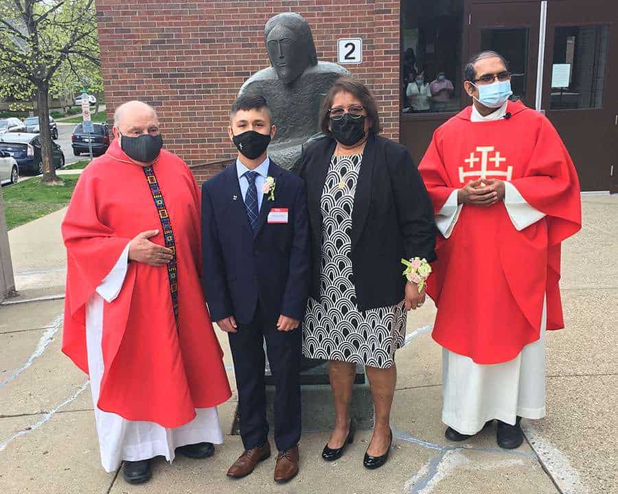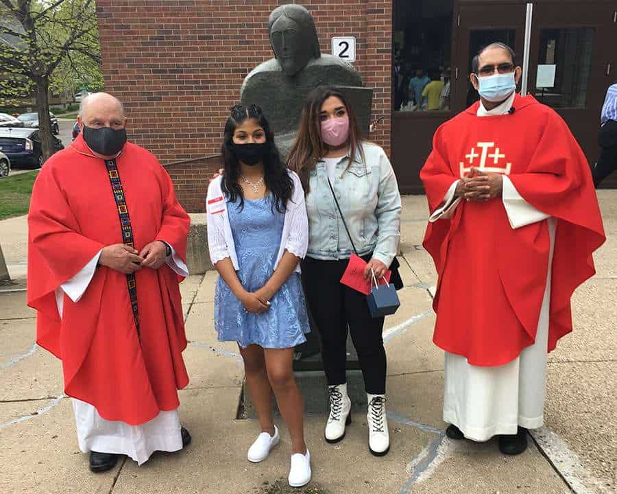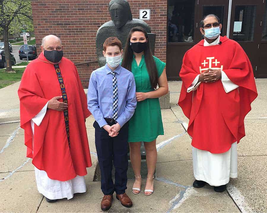 The Church of St. Matthew celebrated the sacrament of Confirmation on Sunday, May 2. Thirteen students in the Faith Formation Program were confirmed, as were three Community of Saints Regional Catholic School students and one Visitation School student. Father Biju Mathew and Father Steve Adrian celebrated the Mass. Thanks to their parents, sponsors, and catechist Dave Sonday for preparing these students to be confirmed.
