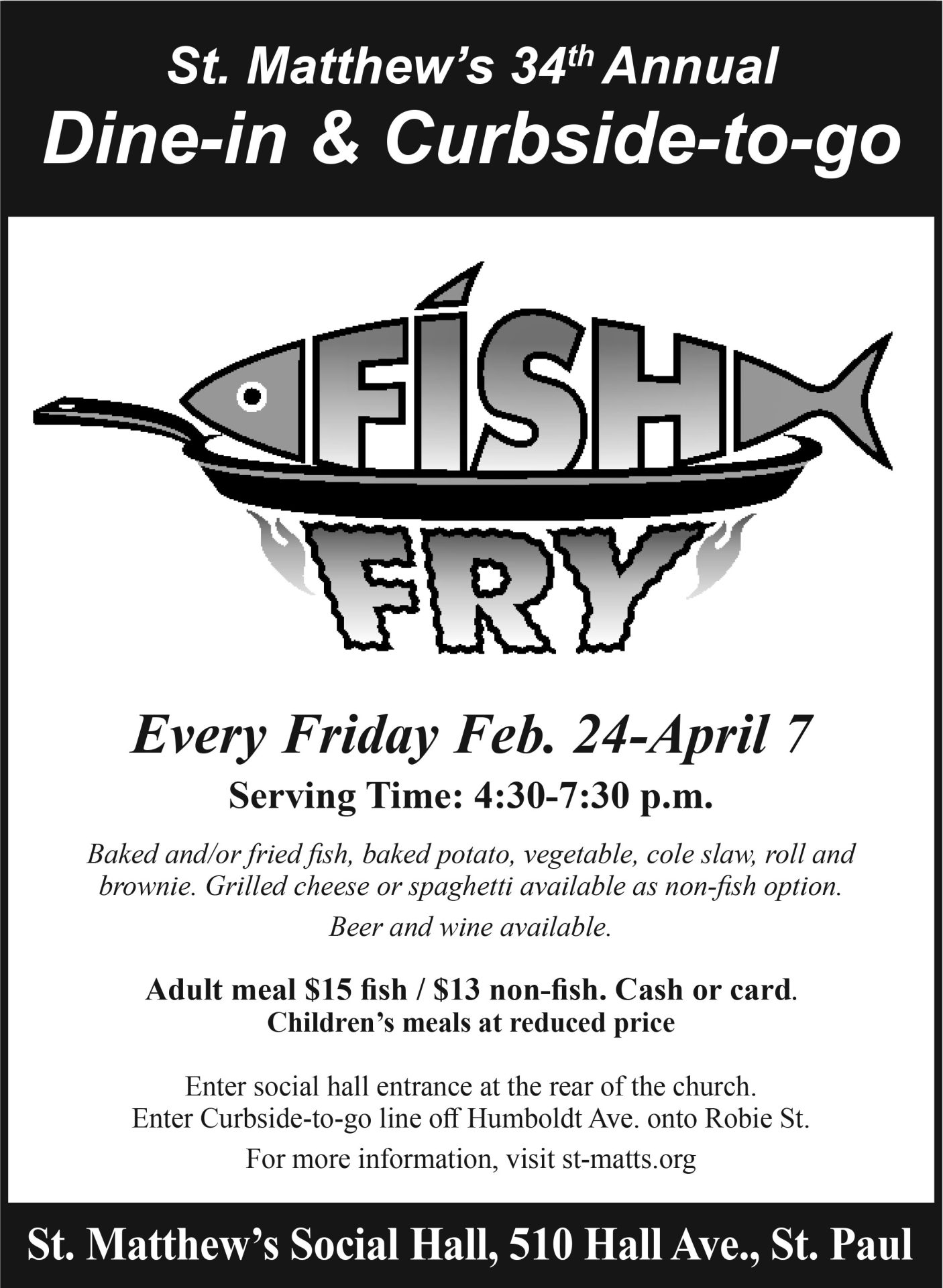 To make this year’s Fish Fry a success, we need your help! Contact Tim Nowak <> to find out how you can help. Thank you for your support!
