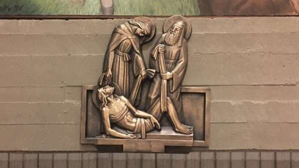 Joseph of Arimathea, who was also a disciple of Jesus, went to Pilate and asked for the body of Jesus, and Pilate ordered it to be given to him. Having taken the body down from the Cross, Joseph wrapped it in a clean linen shroud, and laid it in his own new tomb, which he had hewn out in a rock. And he rolled a great stone to the door of the tomb.