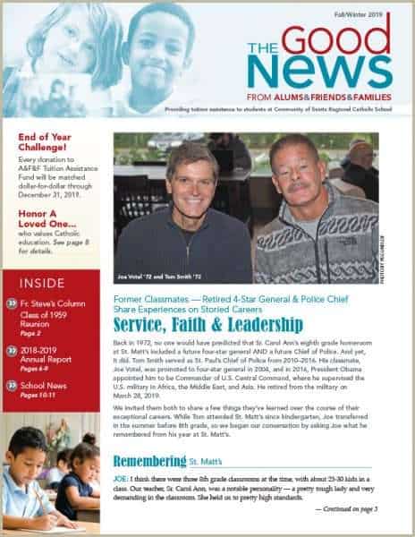 The Good News from Alums, Friends and Families providing tuition assistance to Community of Saints Regional Catholic School