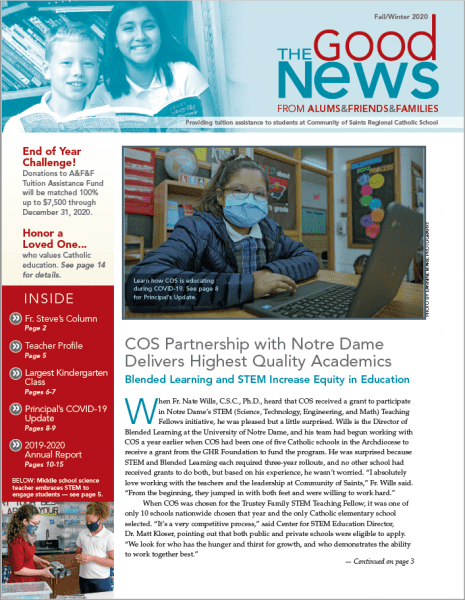 The Good News from Alums, Friends and Families providing tuition assistance to Community of Saints Regional Catholic School