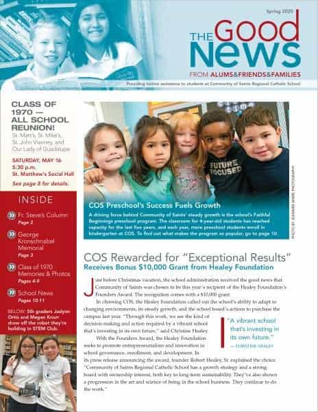 The Good News from Alums, Friends and Families providing tuition assistance to Community of Saints Regional Catholic School