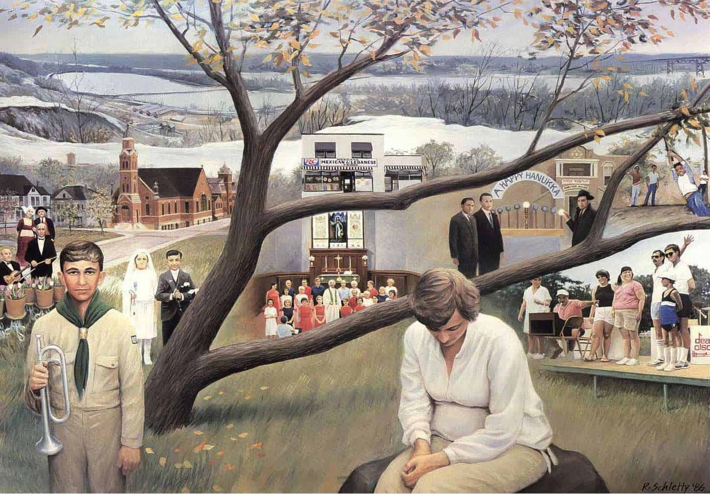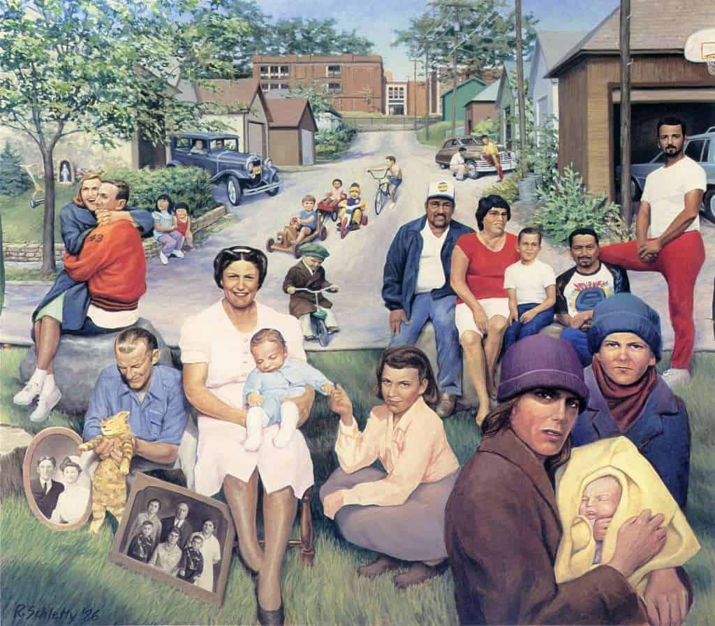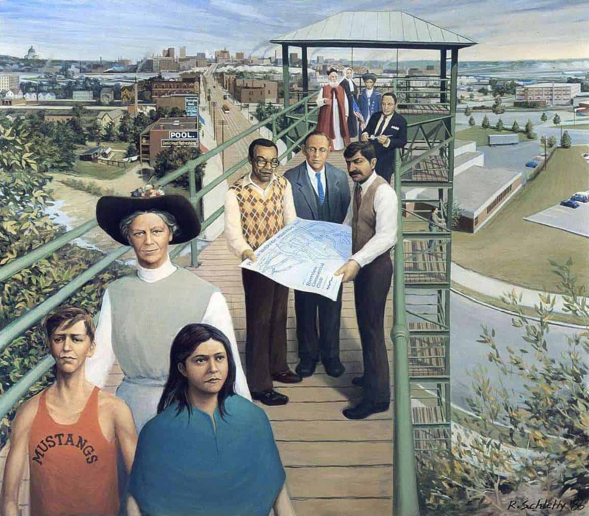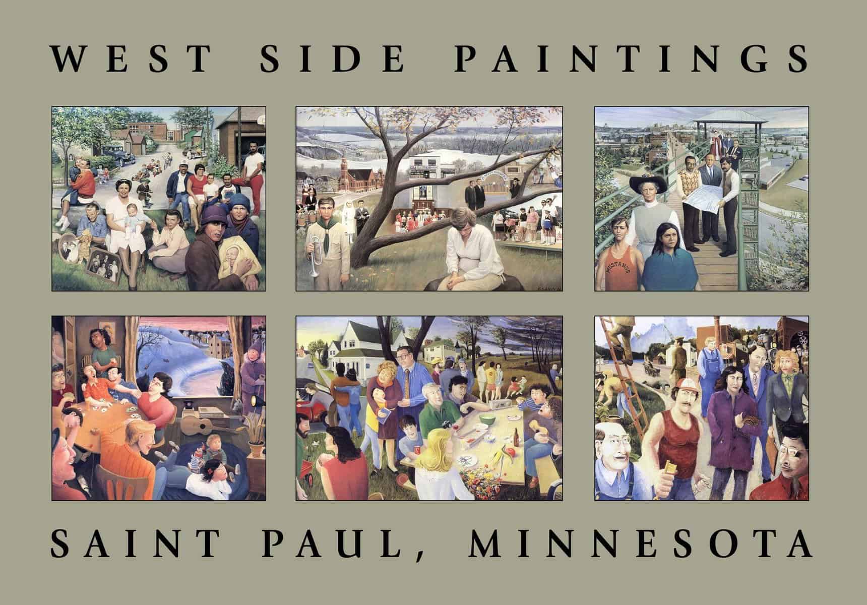 These paintings reflect images of 100 years of life on the West Side of Saint Paul.